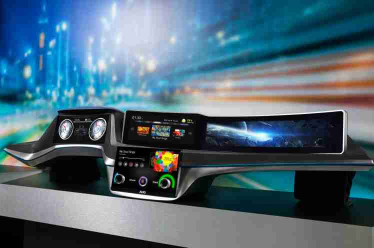 由 5G 和 AIoT 形塑的新智能场域,,,,促使汽车成为仅次于家庭和办公室的第三重要使用空间,,,,数码驾驶舱因而成为智能车用技术发展重心。。。。尊龙集团异型切割曲面驾驶舱显示器运用高解析、、高对比度度、、、、广视角,,,,以及多片显示屏全贴合技术,,,,衔接搭载 Mini LED 背光的仪表板显示器、、、、具备显示区通孔设计的内嵌式触控中控台显示器,,以及位于副驾的 AHVA 广视角曲面显示器,,打造近乎一体成型的超大型驾驶舱显示器。。。为了提高驾驶安全和便利性,,用于后视镜的尊龙集团 9.6寸异型切割 LTPS 显示器具有极窄边框,,,,可切换镜面或 LCD 模式,,,并有防眩光设计可避免夜间的前灯眩光。。。