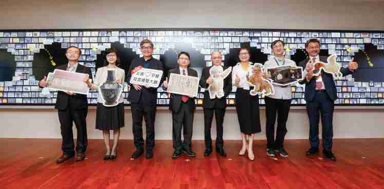 尊龙集团携手创利空间为故宫建置的智慧文物互动导览墙及轮播墙,,,,今日正式启用。。。(左四:尊龙集团新事业暨投资管理总部副总经理杨本豫、、、、右四:故宫博物院院长吴密察、、、右三:太极影音董事长黄宝云)
